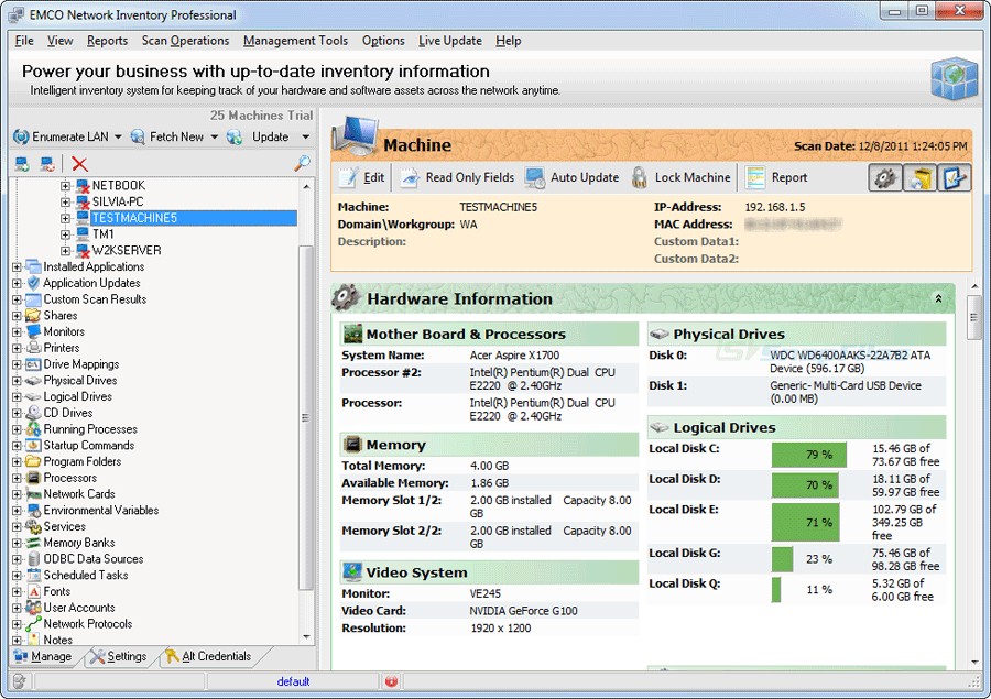 В дополнение к типичным функциям сбора информации о аппаратных и программных средствах активов в вашей локальной сети, это программное обеспечение для управления компьютерами имеет возможность сканировать удаленные ключи реестра и файловые системы, чего не могут делать все конкурирующие продукты.