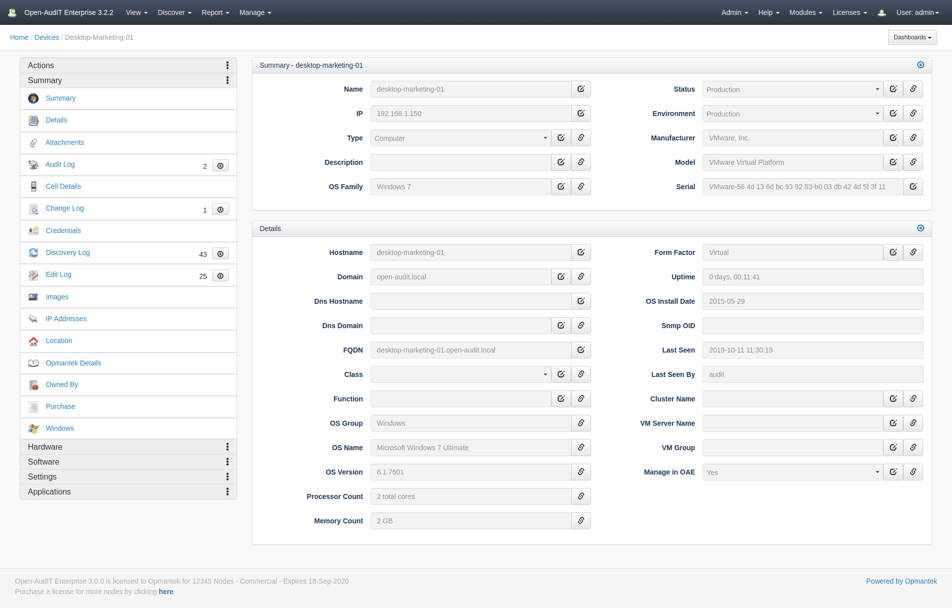 Open-AudIT собирает информацию о устройствах Windows с помощью запроса WMI, и это означает, что в некоторых случаях может быть получена только неполная информация по сравнению с низкоуровневым сканированием устройства. Однако такое ПО не требует длительных настроек и позволяет быстро опросить парк оборудования с минимальной начальной настройкой.