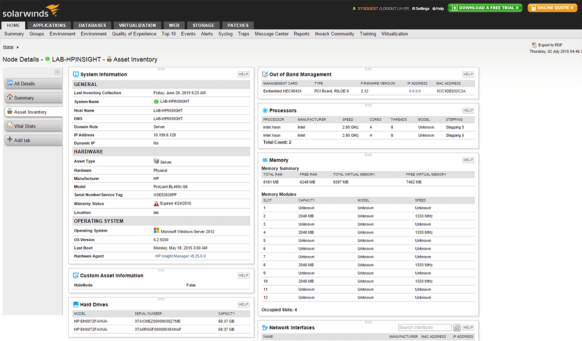Solarwinds выделяется в нашем топ-листе как по цене, так и по функциональности. Тем не менее, это ПО довольно популярно и используется в крупных корпорациях для решения широкого круга задач. Многие также считают его одним из лучших инструментов для инвентаризации программного обеспечения.