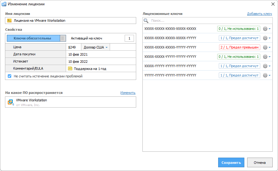 Учет лицензий