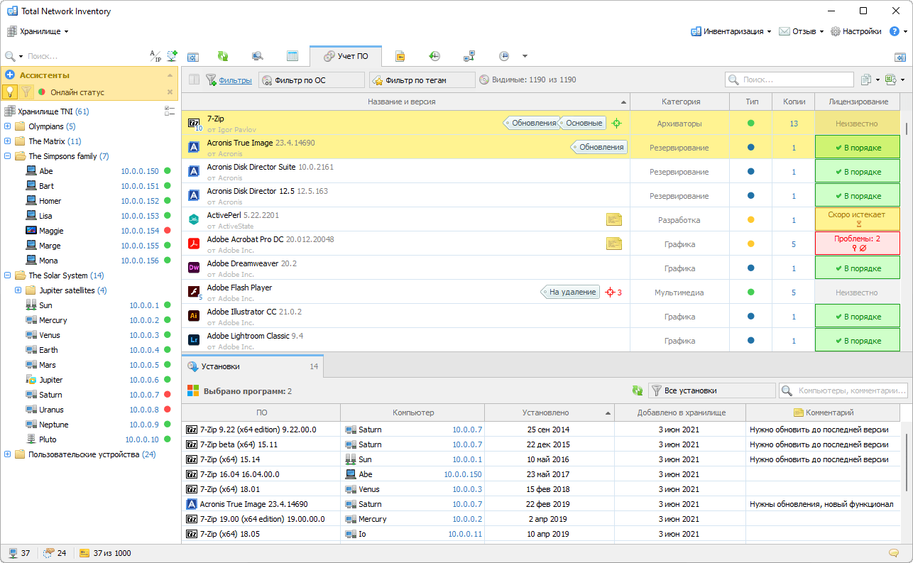 Total Network Inventory Professional отлично подходит для организации управления программными активами в корпоративных сетях. Интуитивно понятный графический интерфейс поможет быстро развернуть программу в сети любого размера в течении короткого времени, а гибкие тарифные планы позволяют подобрать наиболее подходящий вариант для вашей компании. Скачайте 30-дневную пробную версию и убедитесь в этом сами!